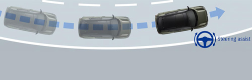Išvažiavimo iš eismo juostos prevencijos sistema aptinka ir stebi eismo juostos žymes. Jei automobilis pradeda išvažiuoti iš savo eismo juostos dėl vairuotojo neatidumo, sistema įspėja vairuotoją garsiniu signalu arba vairo vibracija. Prireikus, sistema padeda grąžinti automobilį į eismo juostą. |
