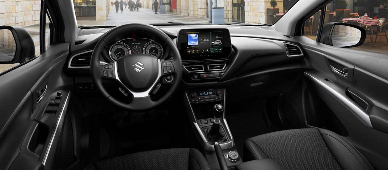 S-CROSS užtikrintas visureigio dizainas ir pažangi saugos įranga – tai tik pradžia. S-CROSS suteikia daugybę erdvės jūsų šeimai, draugams ir bagažui. Su „AllGrip“ visų varomųjų ratų sistema saugiai važiuosite miesto gatvėmis ir užmiesčio keliais. S-CROSS puikiai tinka tiek kasdien važinėti į darbą, tiek ilgesnėms atostogų kelionėms.